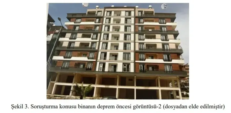 Raporda ayrıca binanın enkazından alınan beton numunesinin, binanın projesinde belirtilen minimum beton sınıfı değerlerini karşılamadığının tespit edildiği ifade edildi. Alınan numunenin binanın zemin üzerinde bulunan taşıyıcı elamanlara ilişkin olduğu, binadan alınan diğer numunelerin değerlerinin yeterli olmasının binanın zemin üzeri taşıyıcı elamanında düşük kalitede beton kullanıldığını ortadan aldırmayacağını, bu sebeple malzeme kalitesizliği yönünden de müteahhit, şantiye şefi, uygulama denetçisi ve kontrol elemanın sorumlu olması gerektiği vurgulandı.