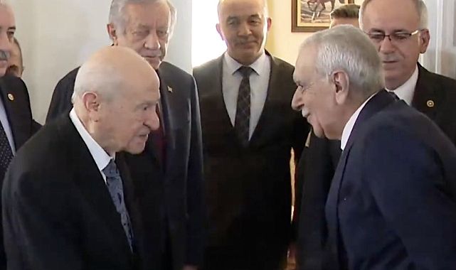 MHP Genel Başkanı Devlet Bahçeli, dün çağrısı üzerine İmralı'da teröristbaşı Abdullah Öcalan ile görüşen DEM Parti heyetini kabul etti. Bahçeli'nin Meclis'teki makamında gerçekleşen görüşmeye, DEM Parti Van Milletvekili Pervin Buldan ve İstanbul Milletvekili Sırrı Süreyya Önder ile İçişleri Bakanlığınca Mardin Büyükşehir Belediye Başkanlığı görevinden uzaklaştırılan DEM Parti'li Ahmet Türk katıldı.