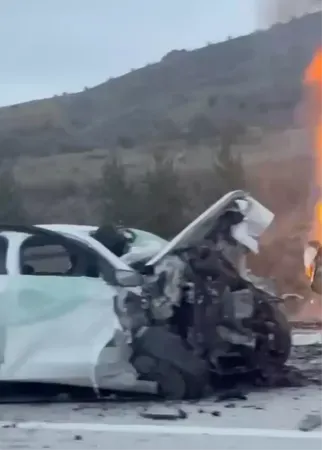 Otomobillerden biri, çarpışmanın etkisiyle yanarak kullanılamaz hale geldi. Kaza nedeniyle yolun tek şeridi trafiğe kapatıldı.