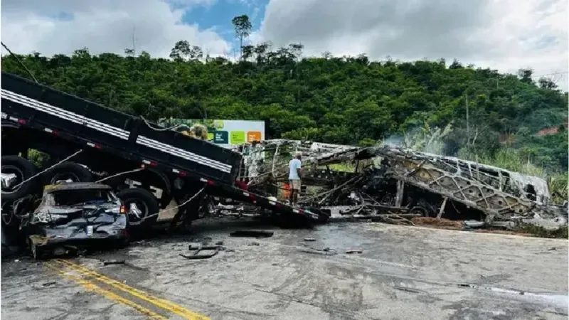 Minas Gerais eyaletinde bulunan Teofilo Otoni kasabası yakınlarındaki ana otoyolda, kiremit yüklü kamyon yolcu otobüsü ve bir otomobile çarptı.