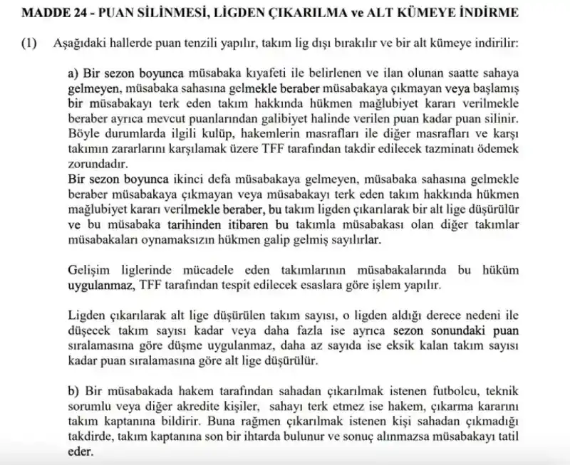 Eğer yeterli çoğunluk sağlanamazsa, 9 Nisan 2024'teki ikinci toplantıda takımın Süper Lig'den çekilme gibi radikal bir karar alınabileceği belirtiliyor. Türkiye Futbol Federasyonu'nun (TFF) talimatlarının 24. maddesi, ligden çekilmenin cezasını belirtiyor. Maddede, bu tür durumlar için belirli cezalar öngörülüyor.