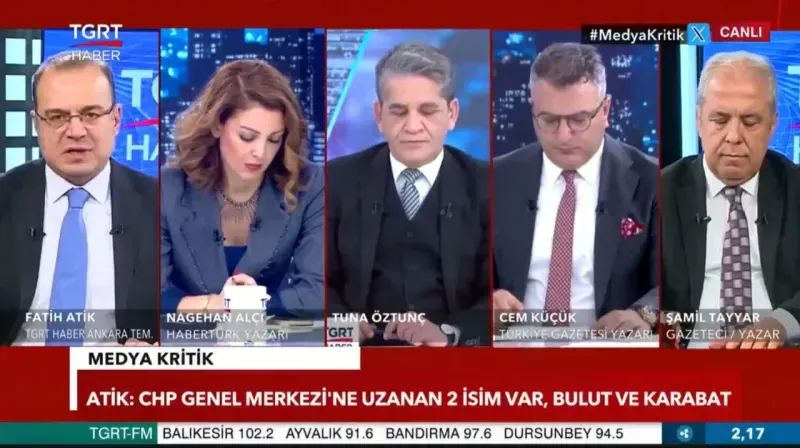 İBB'de yolsuzluk soruşturması dalga dalga devam ederken TGRT Haber Ankara Temsilcisi Fatih Atik'den çarpıcı bir iddia geldi. Yolsuzluk ve rüşvet olayının Özgür Özel'in yardımcıları Özgür Karabat ve Burhanettin Bulut'a ulaştığını söyleyen Atik, CHP içinde ismi geçenlerin derhal istifa etmesini isteyen bir kesim olduğunu belirtti. Atik aynı zamanda CHP'li belediyelere yeni operasyonlar olabileceğini söyledi.