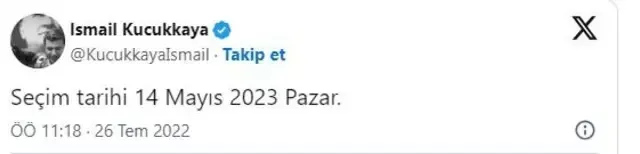 İsmail Küçükkaya 14 Mayıs Cumhurbaşkanlığı seçimini ise 10 ay önceden tahmin ederek sosyal medyasından açıklamıştı.