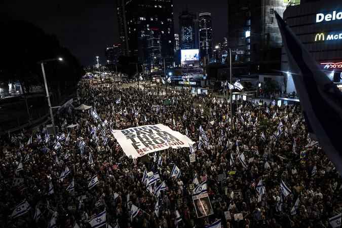 Tel Aviv, Hayfa ve Birüssebi'nin (Berşeva) yanı sıra Netanyahu'nun konutunun bulunduğu kuzeydeki Kayserya kenti ve Batı Kudüs'e ek olarak ülkenin farklı noktalarında hükümetin istifası ve esirlerin geri getirilmesi talep edilen gösteriler düzenlendi.