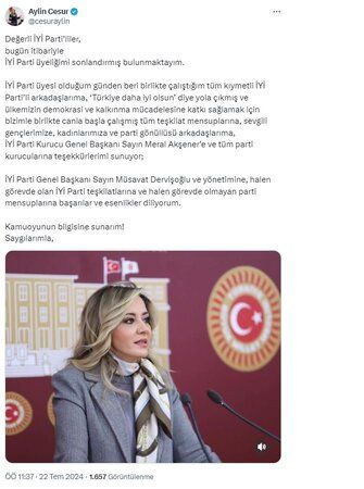 27. Dönem İYİ Parti Isparta Milletvekili İYİ Parti’den istifa etti.