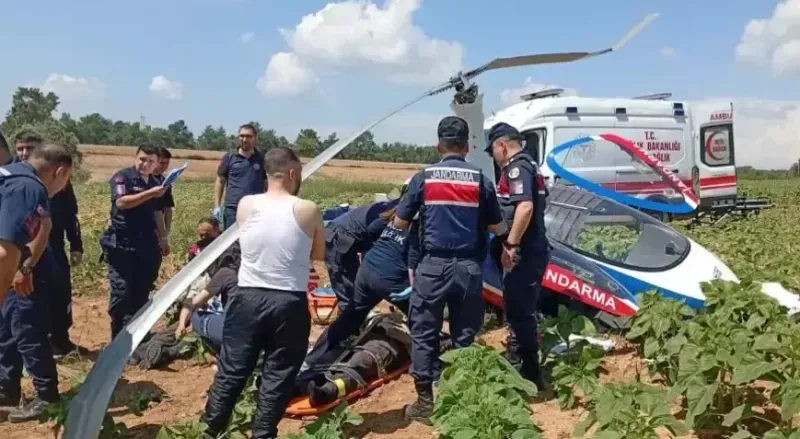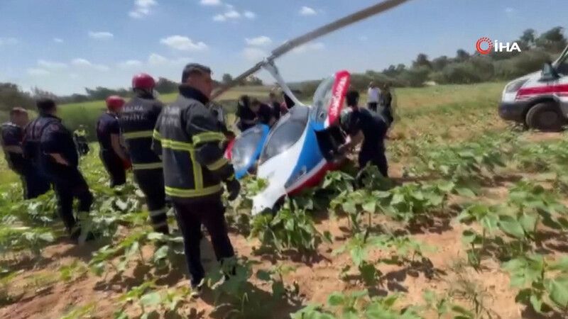 Adana'nın merkez Sarıçam ilçesinde, jandarmanın cayrokopteri araziye sert iniş yaptı.