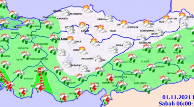 Parçalı, yer yer çok bulutlu, öğle saatlerinde yağmur ve sağanak yağışlı