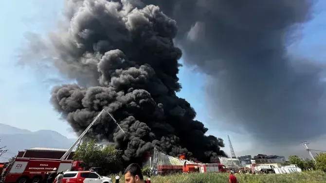 Bursa'nın Yıldırım ilçesinde bulunan bir geri dönüşüm fabrikasında çıkan yangın hızla yayılarak çevredeki 4 fabrikaya sıçradı. Yangının büyümesi nedeniyle çevredeki evler tahliye edildi.