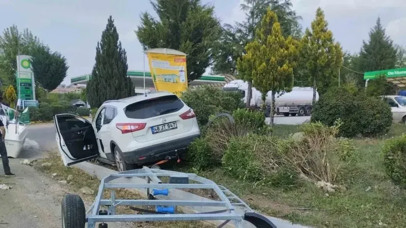 Çarpmanın etkisiyle arabaya bağlı römork üzerinde bulunan tekne devrilirken, kazada sürücü Aladdin Yavaş hafif şekilde yaralandı.