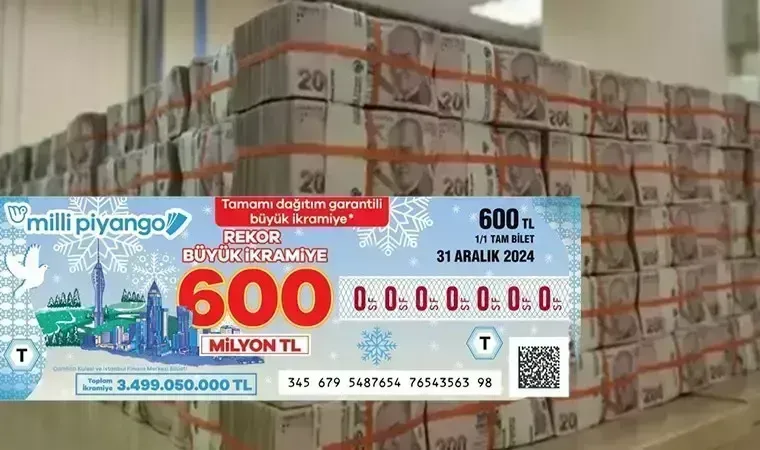 Milli Piyango Yılbaşı özel çekilişinde bu yıl dağıtılacak büyük ikramiye tutarı 600 milyon TL olacak.
