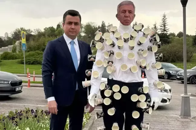 Yapacağı açıklama merakla beklenen AK Partili vekil Osman Gökçek'ten bugün ise dikkat çeken bir hamle geldi. Gökçek elinde çöp torbası ve üzerinde karton bardak bulunan Mansur Yavaş maskesi takılmış cansız mankenle TBMM'ye geldi.