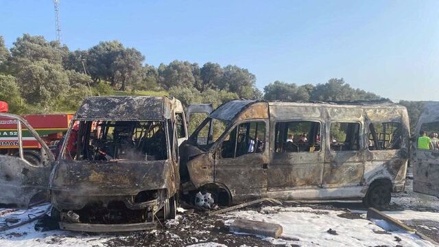 Muğla'nın Milas ilçesi ile Yatağan ilçesi arasındaki karayolunda meydana gelen feci kazada 14 kişi yaralandı. Kazada iki minibüs çarpıştıktan sonra alev aldı.