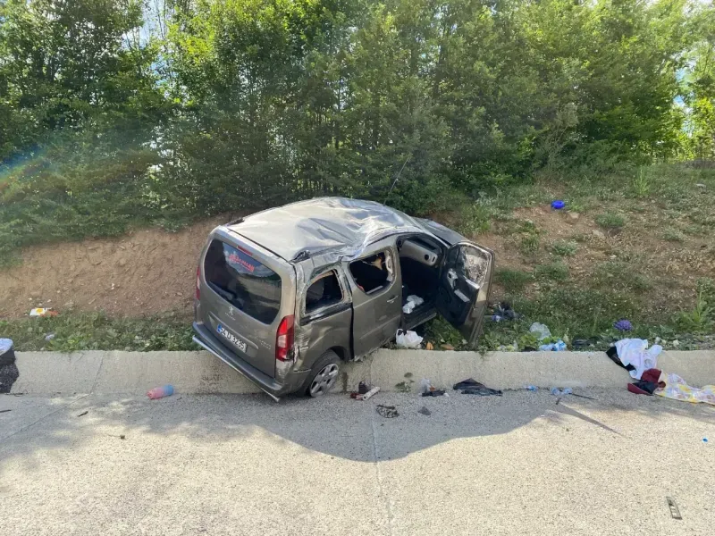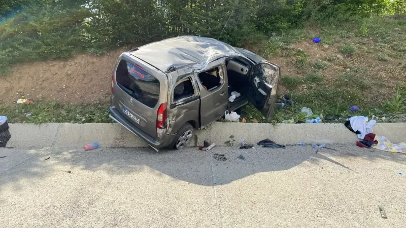 Sürücüsünün direksiyon hakimiyetini kaybetmesi sonucu yoldan çıkarak takla atan hafif ticari araç, yaklaşık 30 metre sürüklendi.