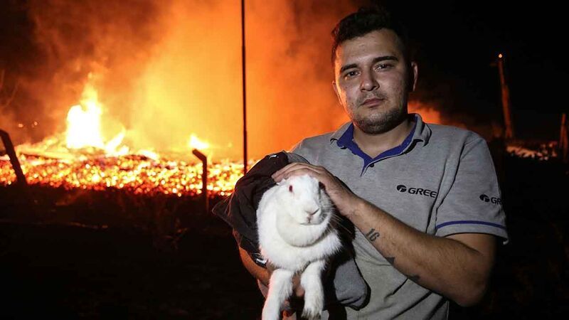 Öte yandan fabrika alanındaki bir kafeste beslenen evcil tavşan, alevleri fark edip bölgeye gelen Bilal Dile ve Salih Belciler tarafından kurtarıldı.