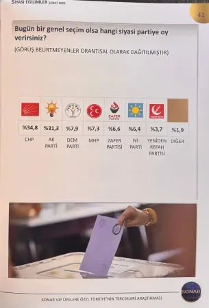 Muhalefet güçlü bir şekilde erken seçim çıkışında bulununca kamuoyu araştırma şirketleri de araştırmalarını yapmaya devam ediyor. Bu kapsamda SONAR Araştırma'nın yaptığı ancak sadece VİP üyelerine sunduğu araştırma sızdı.