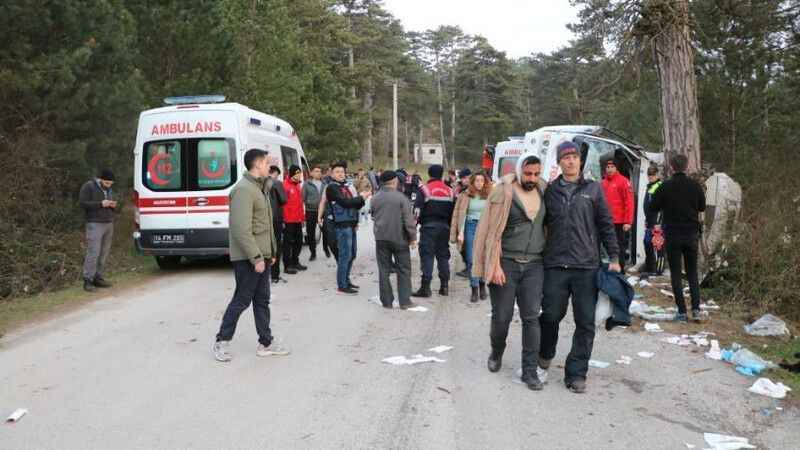 Bolu'da Kartalkaya kayak merkezinden dönen tatilcilerin taşındığı minibüsün karıştığı kazada, araçtaki 19 yolcudan 14'ü yaralandı.