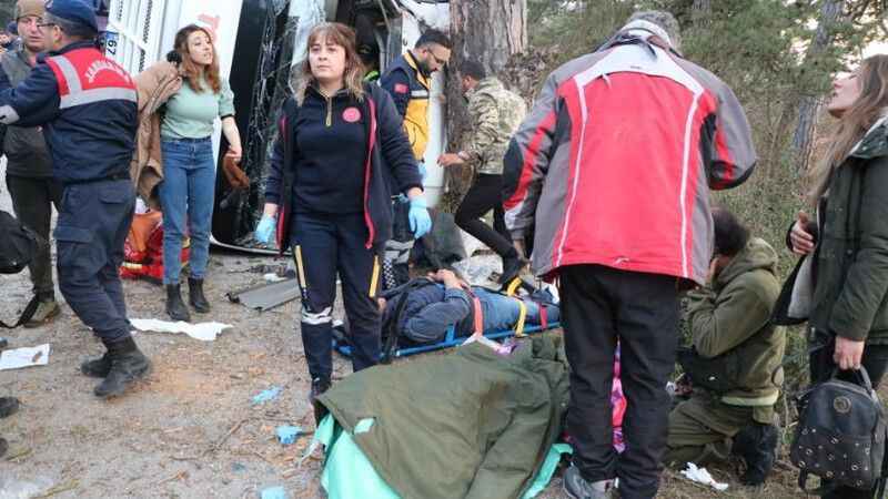 Kazada, minibüste bulunan 19 yolcudan 14'ü yaralanırken, çevredekilerin ihbarı üzerine bölgeye çok sayıda sağlık, AFAD ve jandarma ekibi sevk edildi.