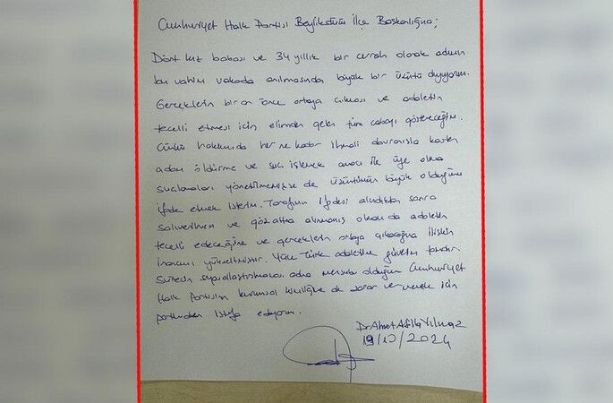 "Dört kız babası ve 34 yıllık bir hekim olarak adımın bu vahim vakada anılmasından büyük bir üzüntü duyuyorum. Gerçeklerin biran önce ortaya çıkması ve adaletin tecelli etmesi için elimden gelen tüm çabayı göstereceğimi bildiririm. Çünkü hakkımda her ne kadar ihmali davranışla kasten adam öldürme ve suç işlemek amacı ile üye olma suçlamaları yöneltilmemişse de üzüntümün büyük olduğunu ifade etmek isterim. Tarafımın ifadesi alındıktan sonra salıverilmem ve göz altına alınmamış olmam da adaletin tecelli edeceğine ve gerçeklerin ortaya çıkacağına ilişkin inancımı yükseltmiştir.Yüce Türk adaletine güvenim tamdır. Sürecin siyasallaştırılması adına, mensubu olduğum Cumhuriyet Halk Partisi’nin kurumsal kimliğine de zarar vermemek için partimden istifa ediyorum"