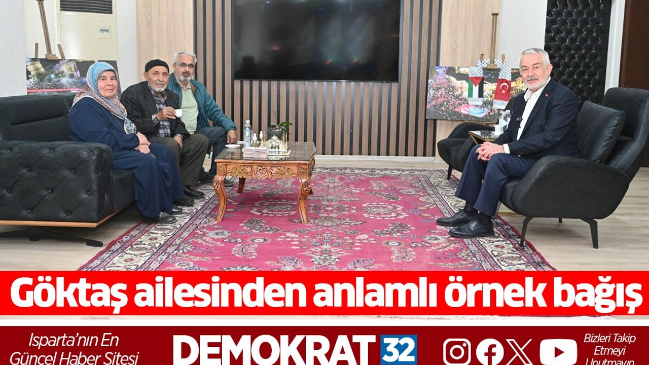 Isparta’da yaşayan Havva ile Mehmet Nuri Göktaş çifti, yeni yoğun bakım ünitesi inşaatına destek olmak amacıyla Isparta Belediye Başkanı Şükrü Başdeğirmen’i ziyaret ettiler. Göktaş ailesi, aile büyükleri adında ellerindeki 63 bin lirayı Başkan Başdeğirmen’e teslim etti.
