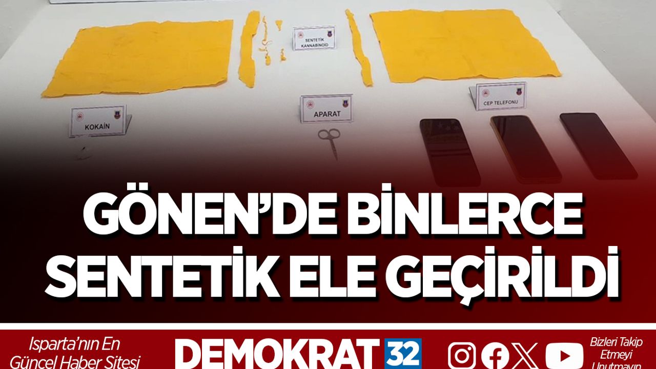Isparta İl Jandarma Komutanlığınca Isparta’nın Gönen ilçesinde gerçekleştirilen operasyon sonucunca, 2 şüpheli ile birlikte 12 bin 150 kullanımlık kâğıda emdirilmiş sentetik uyuşturucu ve 5 gr kokain maddesi ele geçirildi. Adli makamlara sevk edilen şüpheli şahıslar tutuklanarak cezaevine teslim edildi.