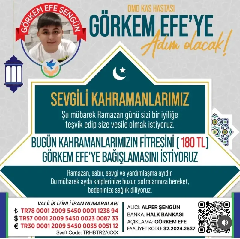 “Görkem Efe’nin umudu çok ama vakti çok az… Ne olur sesimizi duyun. Bu mübarek günlerde sadaka, fitre ve zekatlarınızı Görkem Efe’ye bağışlayın. İnşallah seneye oğlum yaşıtlarıyla aynı sıralarda eğitimine devam edebilecek. Hep birlikte başaralım!”