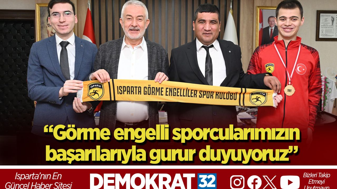 Ziyaretten duyduğu memnuniyetini ifade eden Belediye Başkanı Şükrü Başdeğirmen, Isparta Görme Engelliler Spor Kulübü’nün başarılarının önemli olduğunu belirterek, bu başarıların göğüslerini kabarttığını dile getirdi. Başkan Başdeğirmen, “Hiçbir engel tanımayan kardeşlerimizi Isparta’mız adına kutlamak istiyorum. Bizim birçoğumuzun hiçbir engeli olmadan yapamadıklarını sizler görme engelinize rağmen çok güzel şekilde yapıp büyük dereceler almışsınız. Erkek futbol takımının 5. ligden 2.lige çıkması, kadın futbol takımımızın süper ligde oynaması gururlandırıyor. Isparta Belediyesi olarak böyle bir takımın yanında olmamız ve sizlerin böyle dereceler almanız bizleri mutlu ediyor. Her zaman sizlerin yanında olduğumuzu ve destek olacağımızı, bu güzel serüveninizin çok daha ileriye giderek başarıya ulaşacağına inancımız tamdır. Fedakârca üst seviyede aldığınız başarıları hiçbir zaman unutmayız. Bundan sonra sizlerden liglerde birincilikler bekliyoruz. Recep kardeşimiz de Los Angeles’teki turnuvada da Türk bayrağımızı göndere çektirerek İstiklal Marşımızı söyletecek inşallah. Ziyaretlerinizden dolayı teşekkür ediyor, başarılarınızın devamını diliyorum” görüşlerinde bulundu.