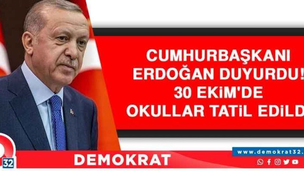 Son dakika haberi! Cumhurbaşkanı Recep Tayyip Erdoğan, sosyal medya hesabından 30 Ekim'de okulların tatil edildiğini duyurdu.