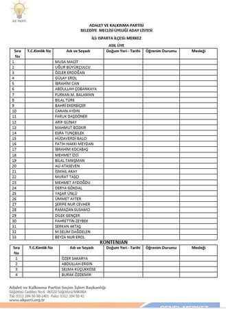 31 Mart seçimleri öncesinde siyasi partiler kesin aday listelerini İlçe Seçim Kurulu’na sundu. Belediye Başkanı ve AK Parti’nin Belediye Başkan Adayı Şükrü Başdeğirmen’in belediye meclis üyesi aday listeleri belirlendi.