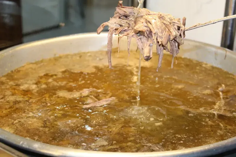 Bir gün önceden hazırlıklarını yapıyoruz, 1 saate yakın etin kanını çıkmasını bekliyoruz sonrasında, etin içindeki kefini alıp temizliyoruz.