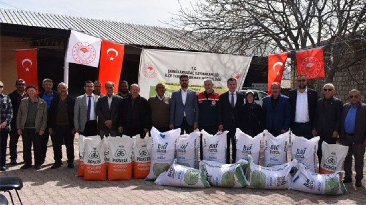 Şarkikaraağaç İlçesi'nde gerçekleştirilen dağıtım törenine İl Tarım ve Orman Müdürü Mehmet Tuğrul, Şarkikaraağaç Kaymakamı Asım Özdemir, Belediye Başkan Yardımcısı Uğur Gözel, İl Genel Meclis Üyesi Fatih Demirtaş, Ziraat Odası Başkanı Güzel Demirel, Ak Parti İlçe Başkanı Mustafa Karanfil ve üreticiler katıldı.