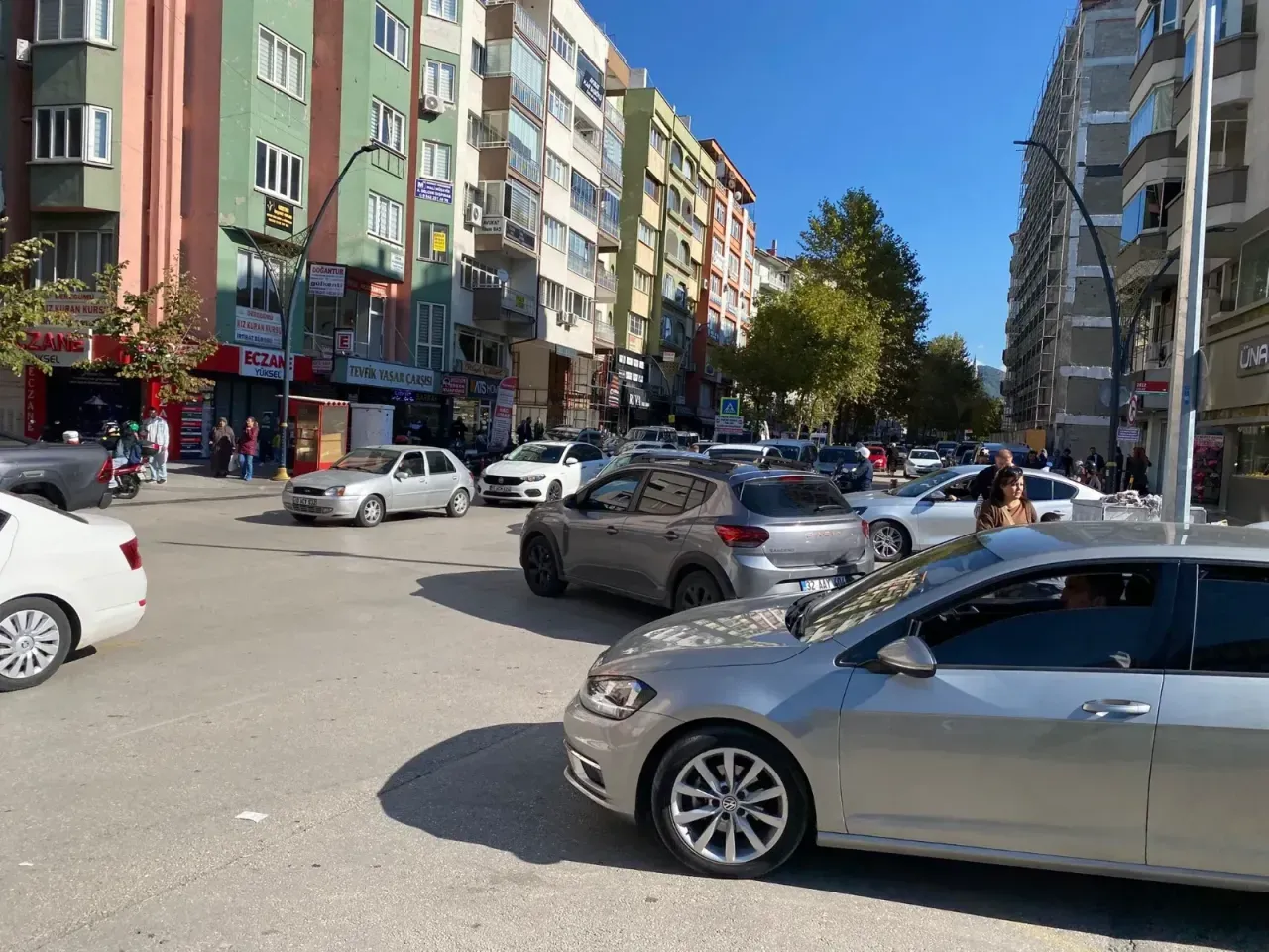 Geçtiğimiz hafta sonu havaların soğumasıyla birlikte vatandaşların kapalı alanları tercih etmesi, AVM çevresindeki trafiği daha da içinden çıkılmaz bir hale getirdi. Meydan AVM otoparkından çıkan araçlar, cadde tek yön olduğu için çarşı istikametine dönemiyor, mecburen Fevzi Paşa İlkokulu yönüne sapıyor. Ancak bu yönlendirme de trafiği rahatlatmak yerine, dar yollarda yoğun bir araç kuyruğu oluşmasına neden oluyor.