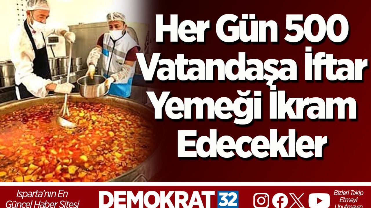Yalvaç Belediyesi, 19 Şubat – 19 Mart 2026 tarihleri arasında idrak edilecek Ramazan ayı boyunca her gün 500 kişilik iftar yemeği verecek.