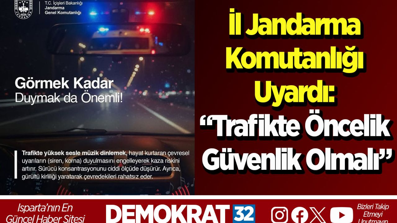 Isparta İl Jandarma Komutanlığı sosyal medya hesabı üzerinden yaptığı paylaşımda sürücüleri trafikte dikkat ve güvenliğe çağırarak uyarıda bulundu.