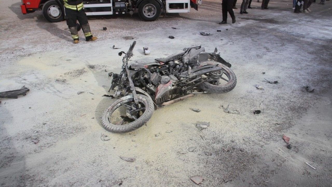 İşçi servisi ile çarpışan motosiklet alev aldı: 2 kişi yaralandı