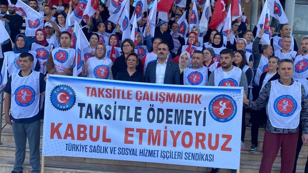Bu sadece bir ücret meselesi değil; emeğe saygı mücadelesidir. Türkiye Sağlık İş Sendikası olarak emeğimizin karşılığını alana kadar haklı mücadelemize devam edeceğiz. Bugün Basın açıklaması ile başlattığımız eylemimizi hakkımızı alana kadar büyüteceğiz” ifadelerini kullandı