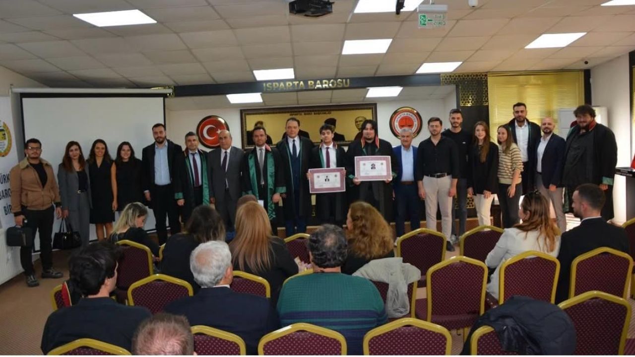 Isparta Barosu tarafından 10 Ekim 2025 tarihinde Baro Hizmet Binası’nda düzenlenen törenle, avukatlık ruhsatı almaya hak kazanan genç meslektaşlar ruhsatlarını teslim aldı.