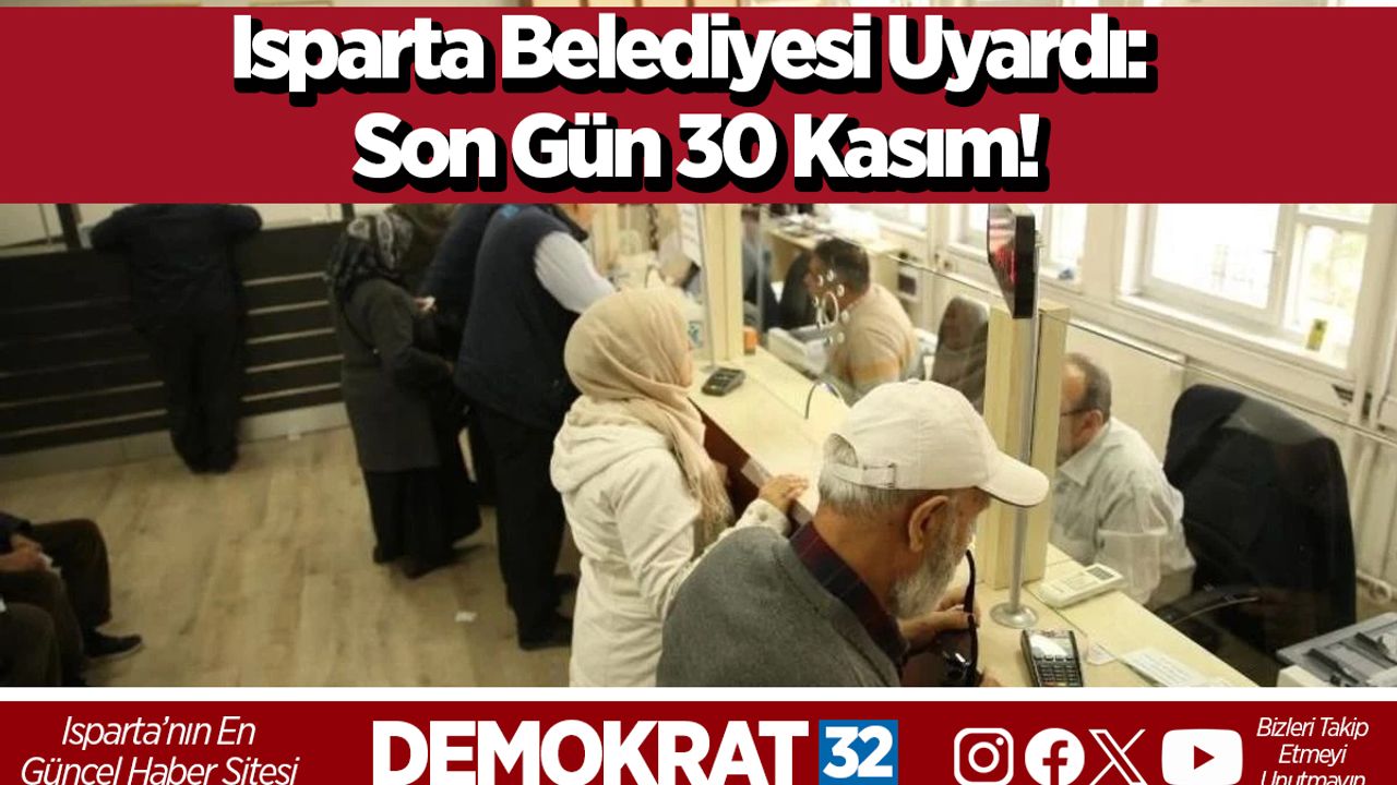Isparta Belediyesi sosyal medya hesabından yaptığı paylaşımda, CTV, evsel katı atık, emlak ve ilan-reklam vergilerinin ikinci taksit ödemeleri için son tarihin 30 Kasım 2025 Pazar olduğunu duyurdu.