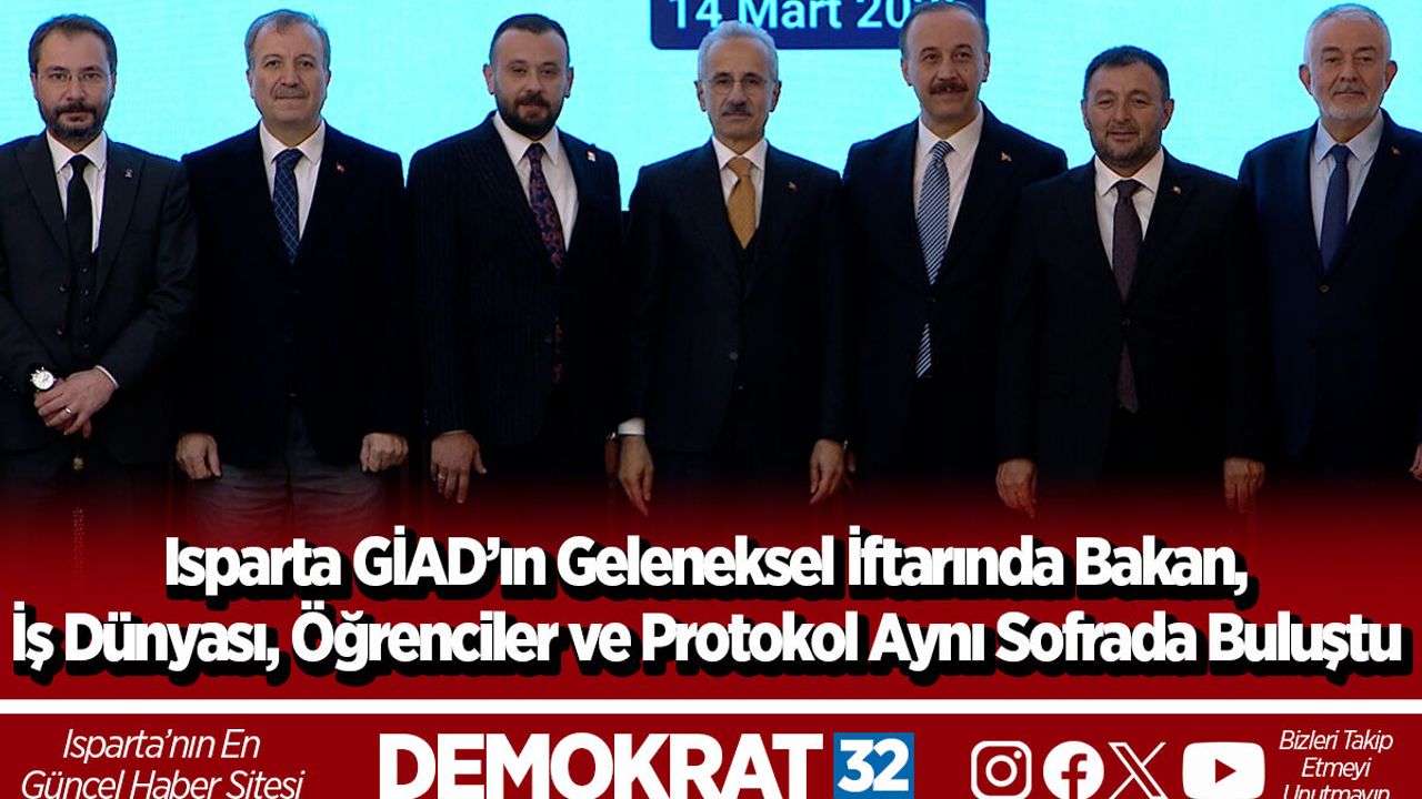 Isparta Genç İş İnsanları Derneği (GİAD) tarafından düzenlenen geleneksel iftar programı geniş bir katılımla gerçekleştirildi. Programa Ulaştırma ve Altyapı Bakanı Abdulkadir Uraloğlu’nun yanı sıra Isparta protokolü, iş insanları, sivil toplum temsilcileri ve dernek üyeleri katıldı.