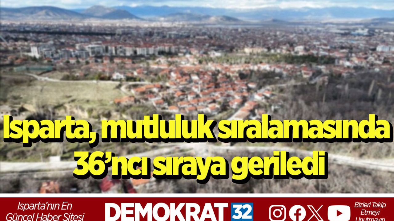 Geçmiş yıllarda "Türkiye’nin en yaşanabilir şehri" unvanını elinde tutan ve yaşam endeksinde zirveye abone olan Isparta, mutluluk sıralamasında 36’ncı sıraya kadar geriledi.