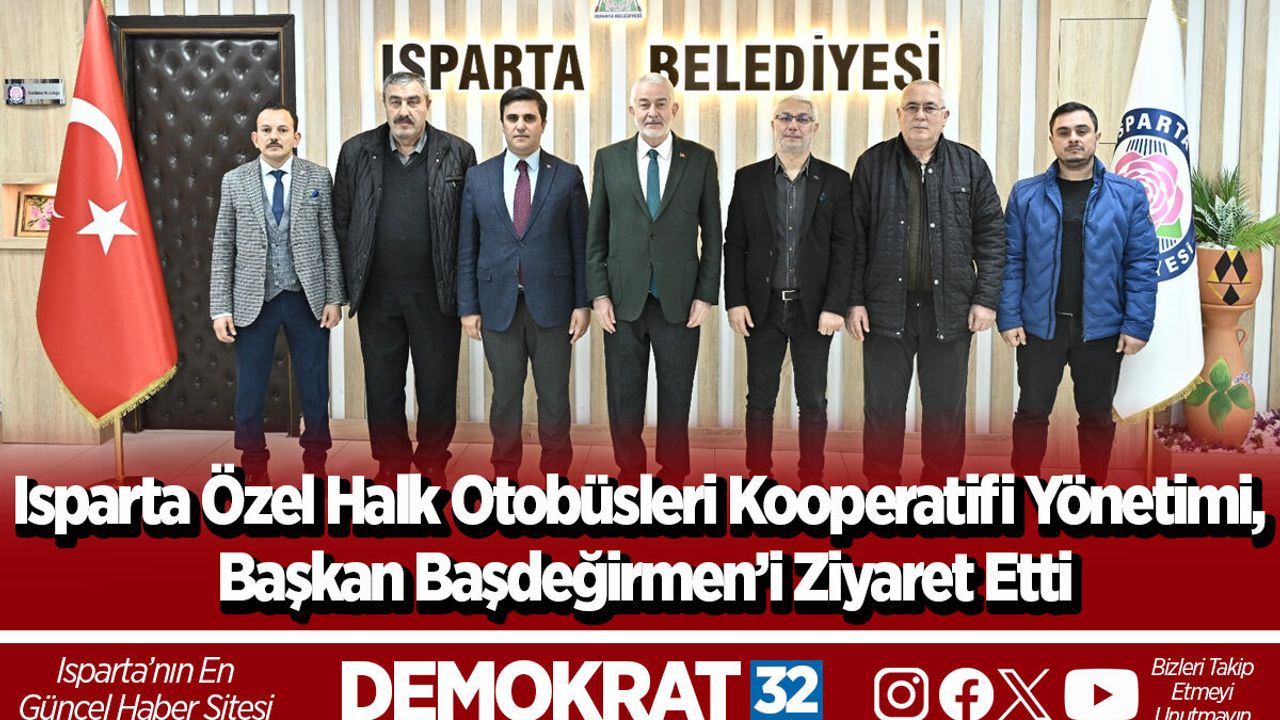 Isparta Özel Halk Otobüsleri Kooperatifi’nin geçtiğimiz haftalarda yapılan olağan genel kurulunda başkanlık görevine yeniden seçilen Faruk Daşdöner ve beraberindeki yönetim kurulu üyeleri, Isparta Belediye Başkanı Şükrü Başdeğirmen’i ziyaret etti.