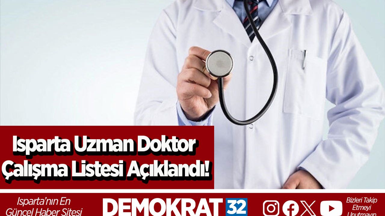 Isparta Şehit Yunus Emre Devlet Hastanesi, 10 Aralık 2025 Çarşamba gününe ait uzman hekim çalışma listesini yayımladı. Hastane yönetimi tarafından duyurulan listede, farklı branşlardaki uzman doktorların o günkü görev dağılımları kamuoyuna bildirildi.