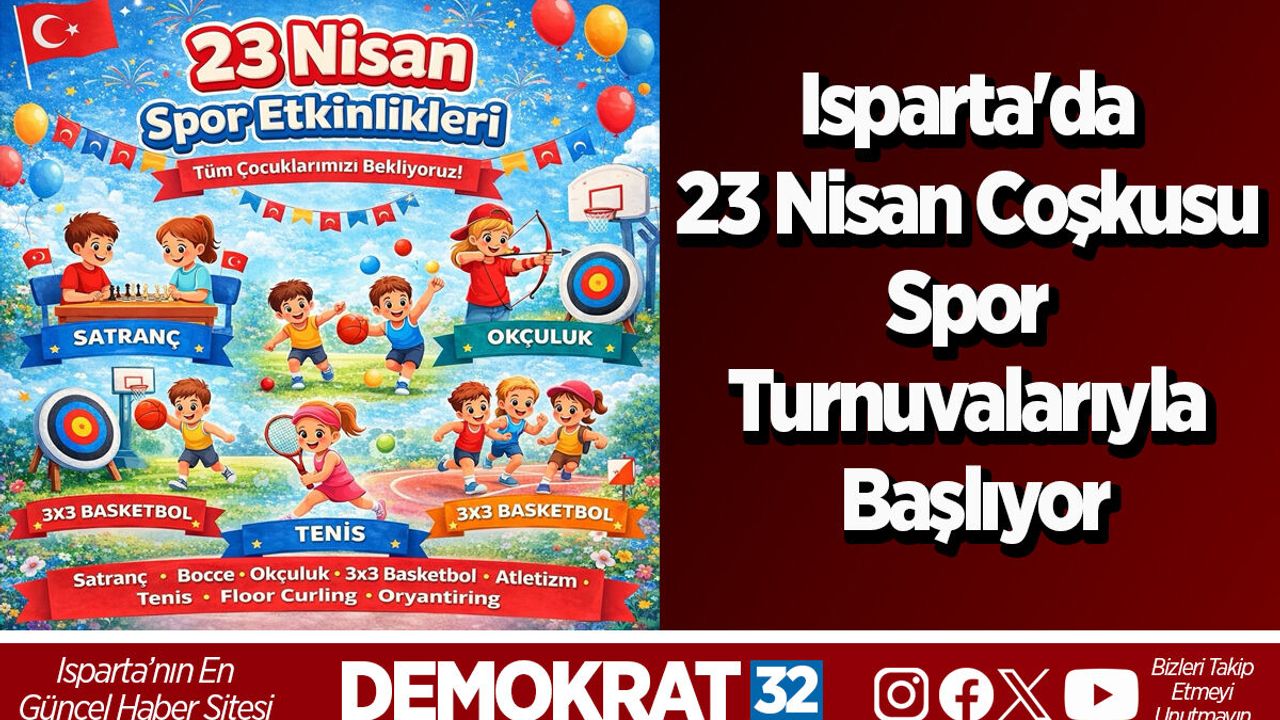 Isparta Gençlik ve Spor İl Müdürlüğü, 23 Nisan Ulusal Egemenlik ve Çocuk Bayramı kutlamaları kapsamında geniş katılımlı spor turnuvaları düzenliyor. "Geleceğin sporcuları sahaya çıkıyor" sloganıyla gerçekleştirilecek organizasyonda, birçok farklı branşta müsabakalar sporseverlerle buluşacak.