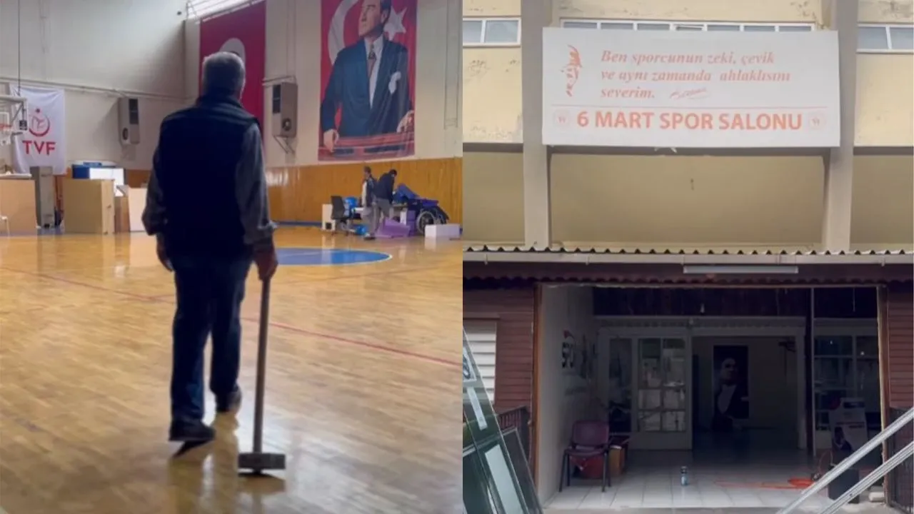 Spor salonundaki koltukların sökümü yapılırken, spor ekipmanları da tek tek çıkarılıyor. İhale kapsamında salon ile yanında bulunan lojman yıkılacak ve yerine modern bir spor tesisi inşa edilecek.