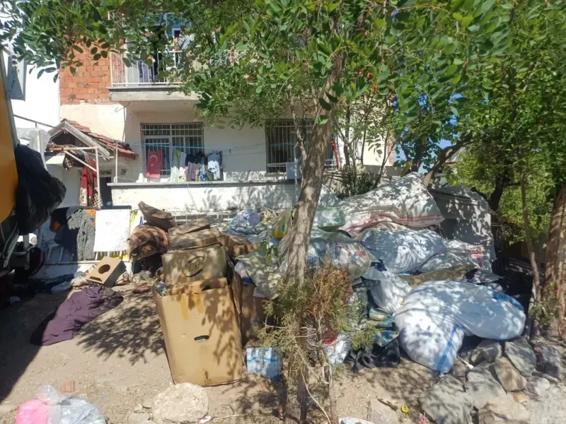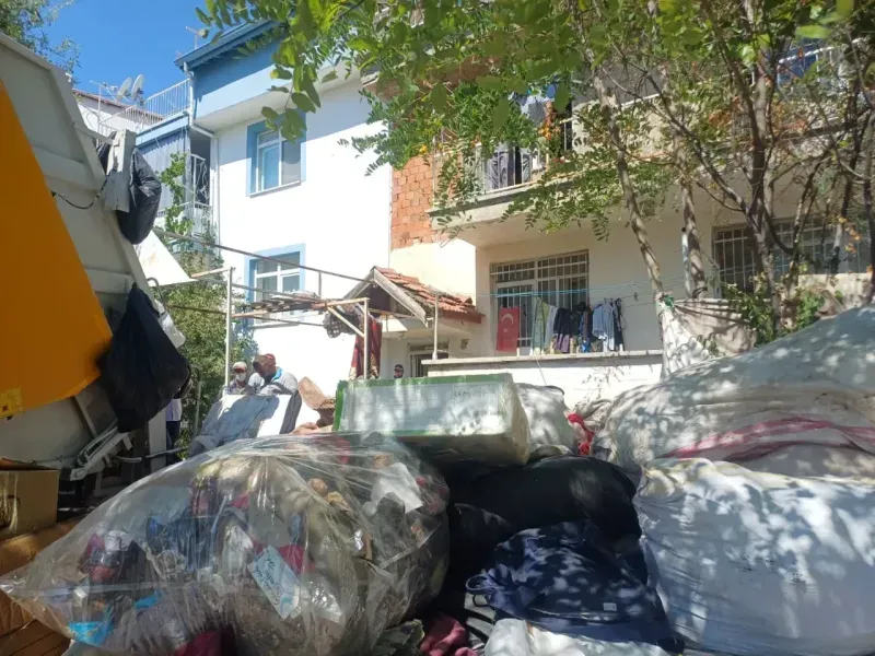 Ekipler tarafından evin içerisinden onlarca çöp çuvalı çıkarıldı. Çöpler, belediyeye ait çöp kamyonuna yüklenerek bölgeden uzaklaştırılıyor. Çalışmalar sırasında evde biriken atıkların tahliye edilmesi için yoğun çaba harcanıyor.