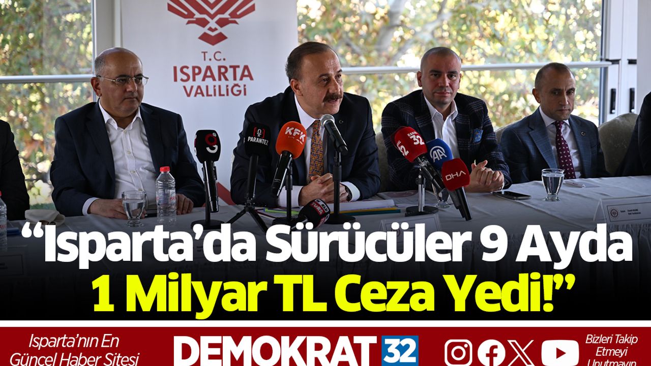 Isparta Valisi Abdullah Erin, yılın ilk 9 ayında kentte kesilen trafik cezalarının yaklaşık 1 milyar TL’ye ulaştığını açıkladı. Vali Erin, özellikle alkollü araç kullanımı, kırmızı ışık ihlali ve aşırı hız konusunda sürücüleri sert bir dille uyardı.