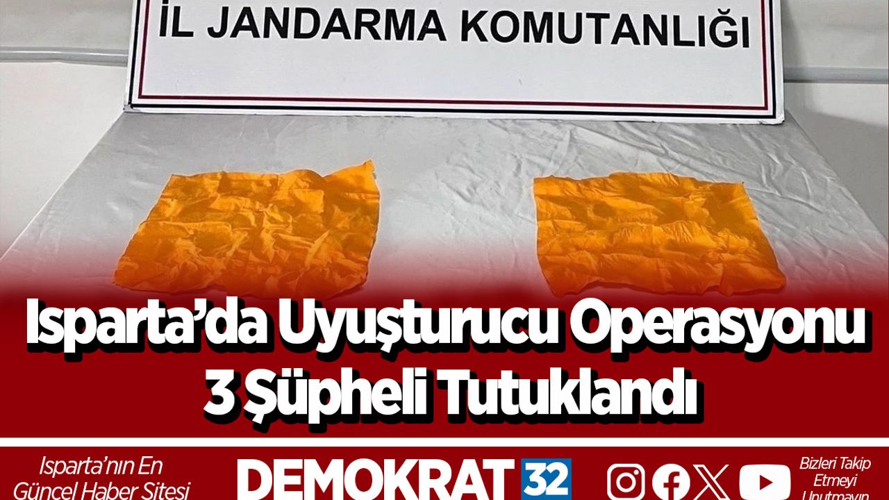 Isparta İl Jandarma Komutanlığı ekiplerince uyuşturucu tacirlerine yönelik yürütülen çalışmalar kapsamında Yalvaç ilçesinde düzenlenen operasyonda 3 şüpheli tutuklandı.
