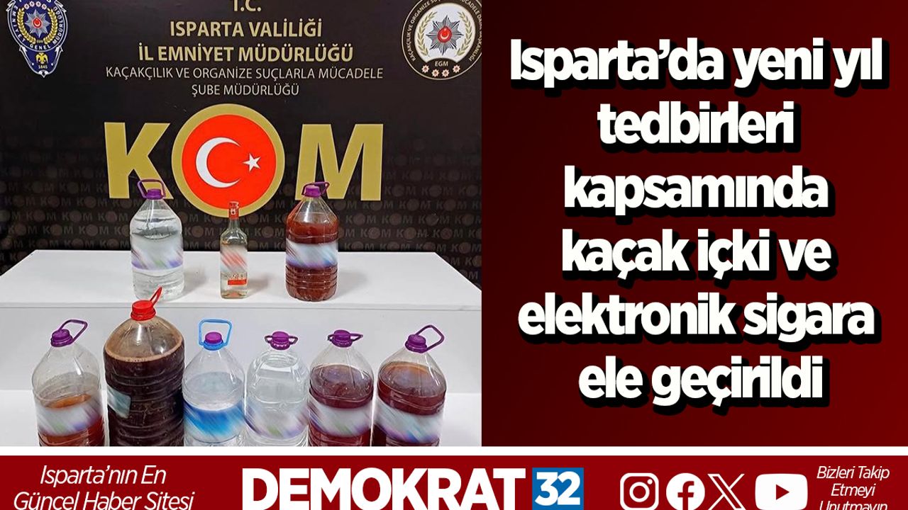 sparta'da polis ekiplerince yılbaşı tedbirleri kapsamında yapılan çalışmalarda çok miktarda kaçak içki ve elektronik sigara ele geçirilirken, şüpheliler hakkında adli işlem başlatıldı.