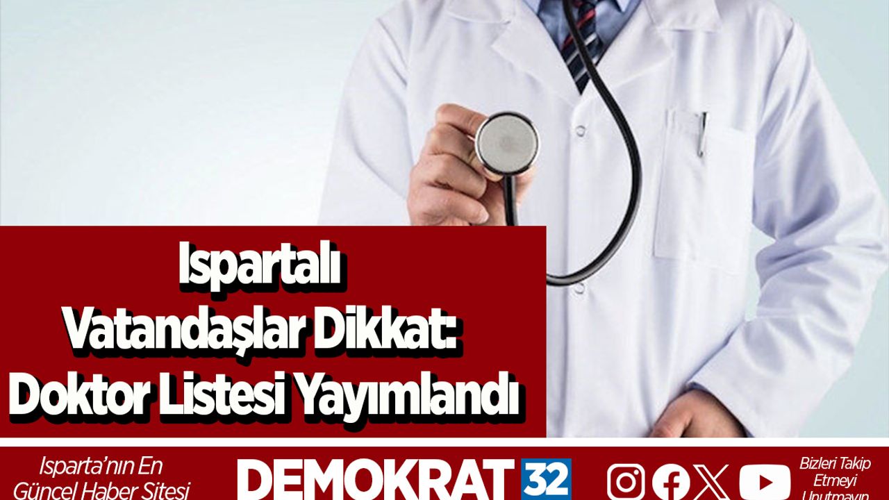 Isparta Şehit Yunusemre Devlet Hastanesi Uzman Hekim Çalışma Listesi yayımlandı.