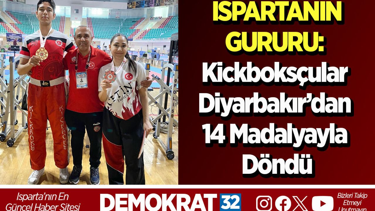 Diyarbakır’da düzenlenen Türkiye Kickboks Şampiyonası’na damga vuran Ispartalı sporcular, kazandıkları madalyalarla kentin gururu oldu. 30 Mart – 3 Nisan 2026 tarihleri arasında gerçekleştirilen şampiyonada Isparta’yı temsil eden 30 sporcudan 14’ü kürsüye çıkma başarısı gösterdi.