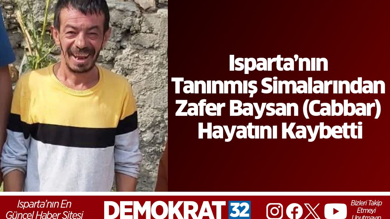 Sidre Mahallesi’nde yaşayan, Isparta’nın tanınmış simalarından Zafer Baysan (Cabbar), geçirdiği kalp rahatsızlığı nedeniyle tedavi gördüğü hastanede yaşamını yitirdi.